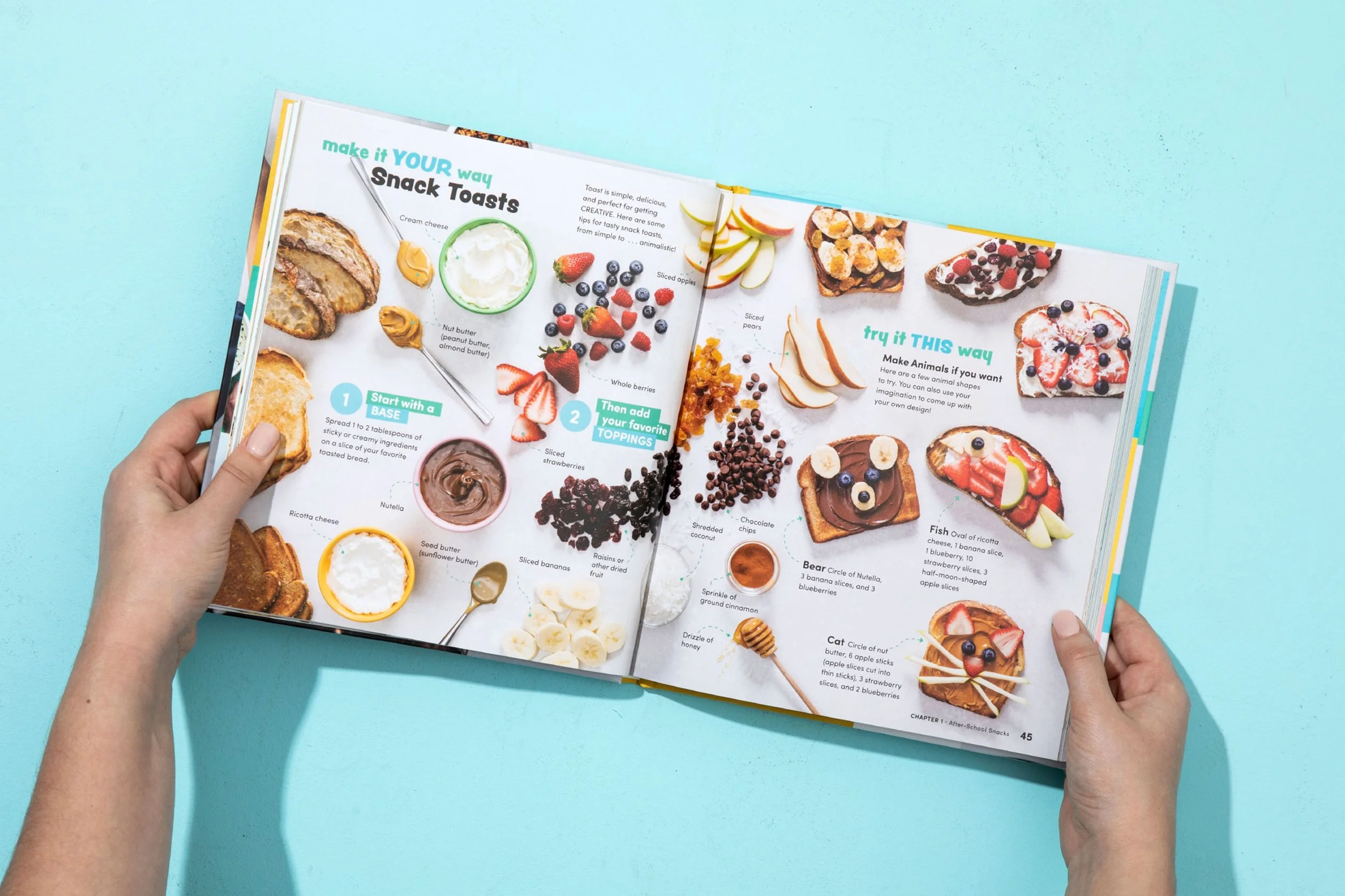 We brought in kids over a dozen different photography sessions to capture them engaging and cooking the food—it was important for kids to see themselves within the pages